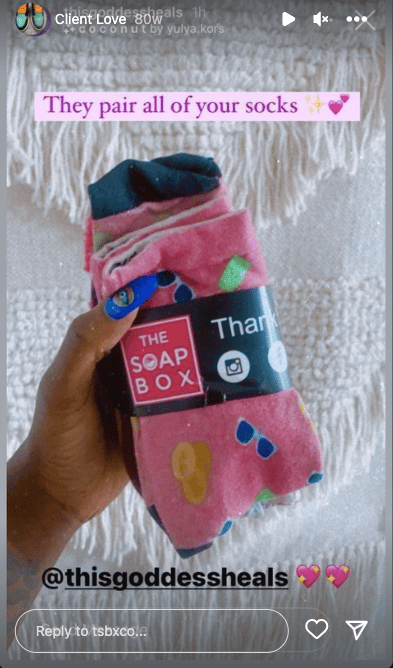 can even lead to clients posting pictures of their socks on social media, which leads to even MORE exposure for your business (two examples below from our Instagram)